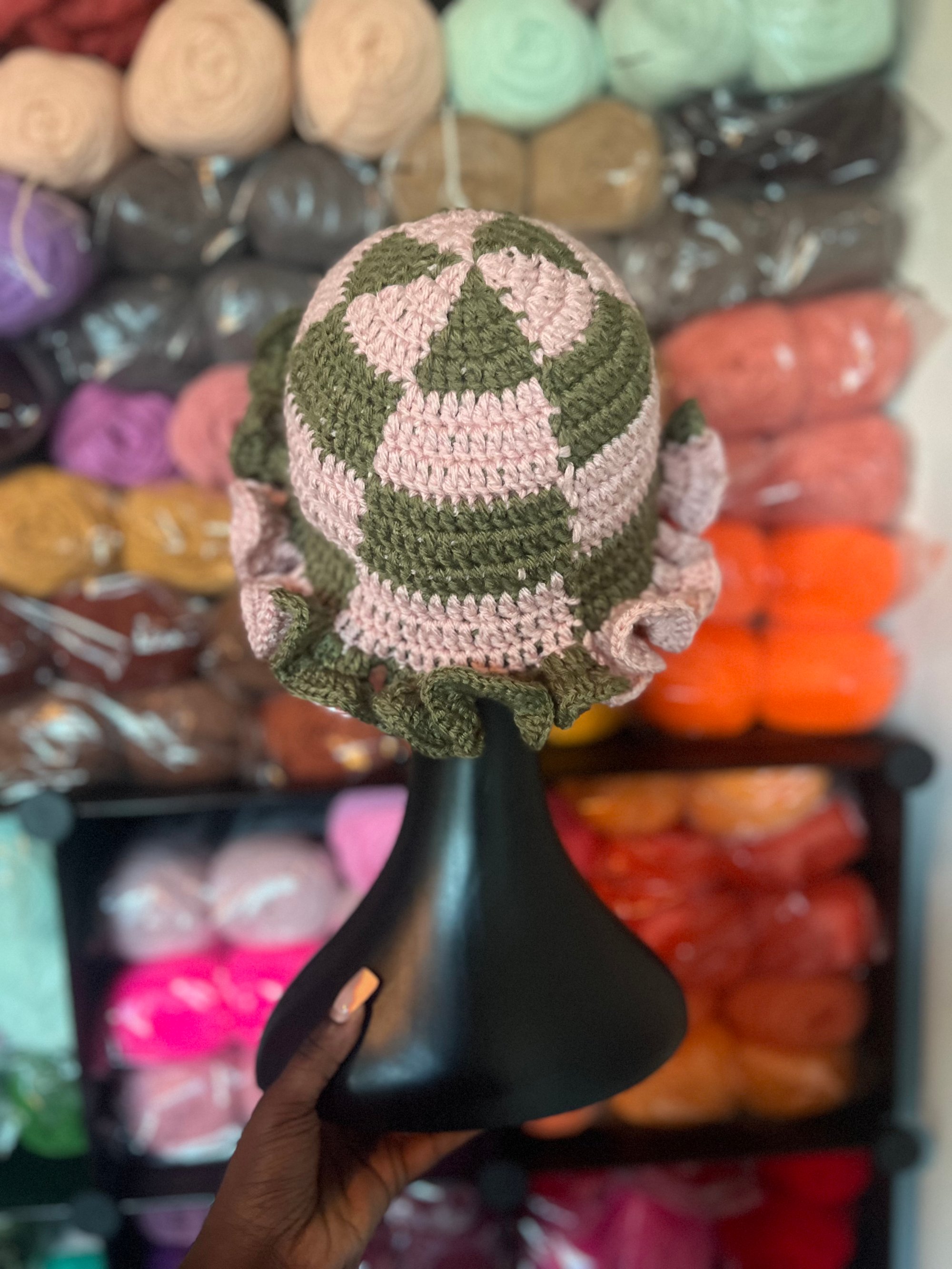 Handmade crochet hat with ruffle brim. Colors can be customized. Subject to yarn availability